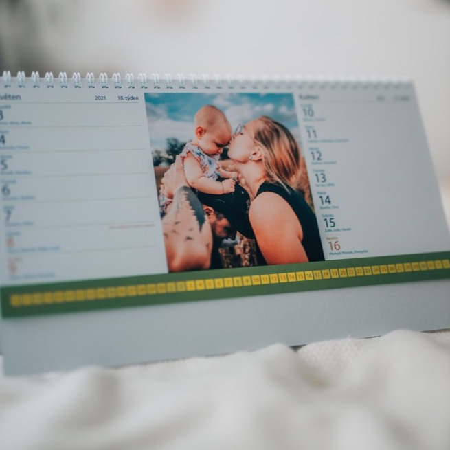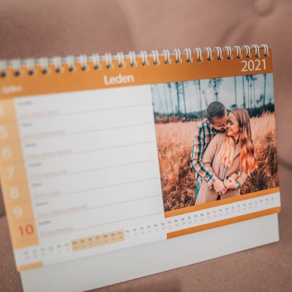 Stolní kalendář z vlastních fotek je ideálním doplňkem každého pracovního stolu, obýváku nebo kuchyně. Všechny stolní kalendáře jsou standardně doplněny o volné řádky k plánování důležitých událostí, najdete zde kdo kdy slaví svátek a především přinese radost z pohledu na vybranou fotografii. Další možností je doplnění vybraných dní vlastní poznámkou, kterou zadáte již při tvorbě v našem online editoru. Váš manžel tak už na společné výročí svatby rozhodně nezapomene!